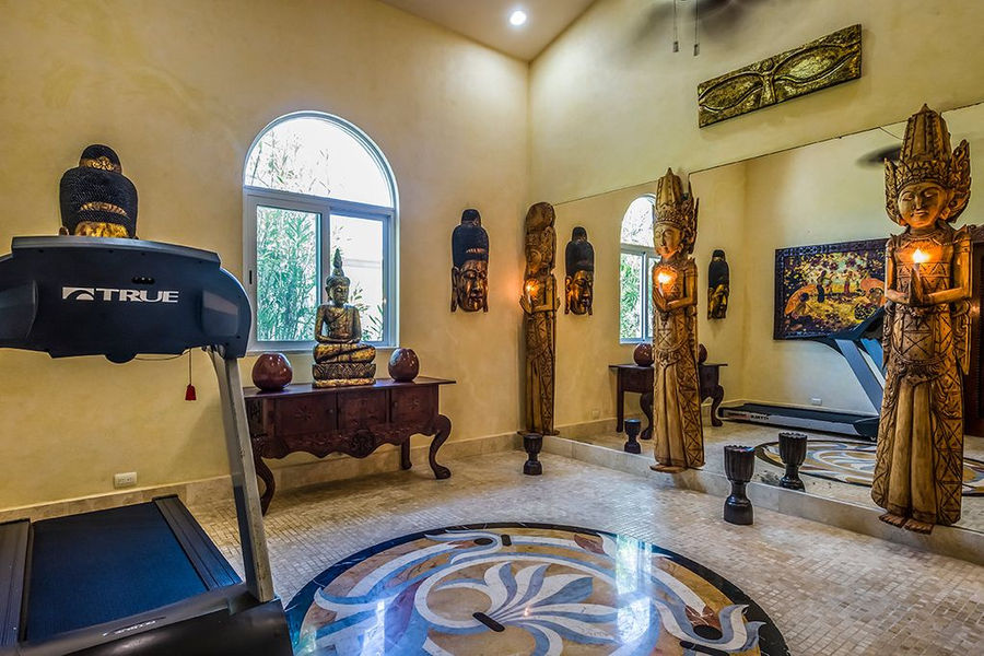 Four magnificent and stately bedrooms with sturdy and decorative wooden frames accommodate up to eight guests at Casa Del Mar Bonito. All of the bedrooms feature en-suite bathrooms and a rich variety of perks. The master suite takes up the entire second floor and is accessed via a marble stairway that leads to a balcony overlooking the conservatory floor. Additionally, the yoga room with its own ensuite bathroom and sauna has been converted to a bedroom, as has the office next to the upstairs masters bedroom.